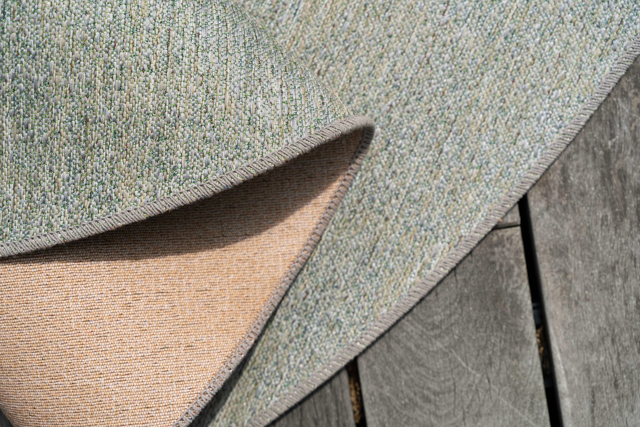 Het toegepaste materiaal in combinatie met de jacquard weeftechniek zorgt voor een chique uitstraling voor binnen en buiten. Daarnaast zorgt het materiaal er ook voor dat het ovale buitenvloerkleed deze prachtige look houdt. Het materiaal is namelijk speciaal ontwikkeld om tegen zonlicht, regen en zwaar weer te kunnen. Het rotan vloerkleden blijft dus heel lang heel mooi, onder welke weersomstandigheden dan ook.