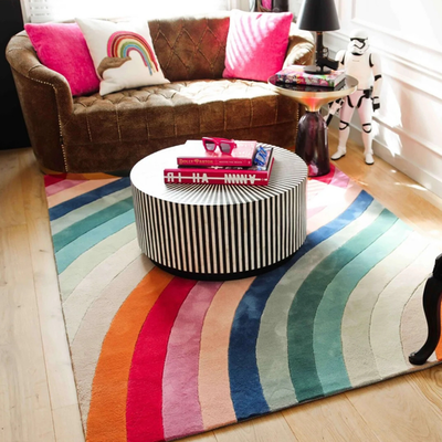 Maak kennis met ons Rainbow 98 vloerkleed, een echt statementstuk dat jouw ruimte transformeert met zijn levendige energie en opvallende design. Dit vloerkleed is een ware viering van kleur, met een prachtig regenboogpatroon dat een vleugje vreugde en levendigheid toevoegt aan elke kamer. Rainbow 98 is samen met Fred van Leer ontworpen om een unieke esthetiek te creëren die jouw interieur tot leven brengt. Met een mix van verschillende kleuren is dit vloerkleed een speels en levendig accent in elke ruimte. Voeg een dosis vrolijkheid toe aan je huis met ons Rainbow 98 vloerkleed, een super leuk en onmisbaar stuk.