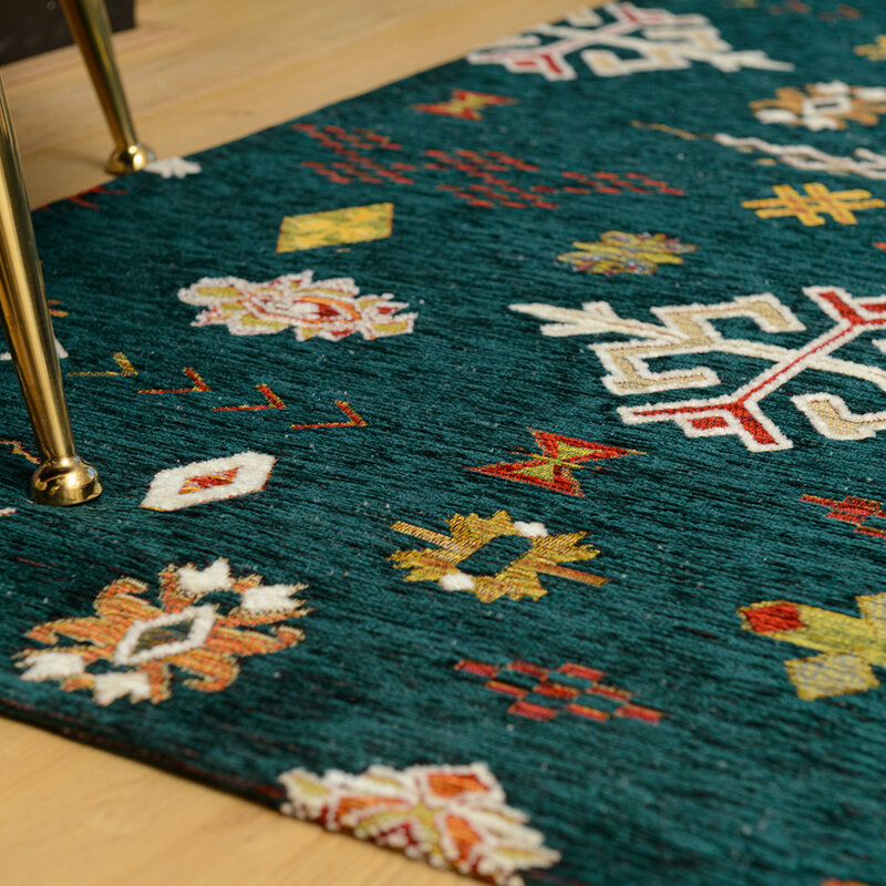 Haal Zuid-Amerika in huis met dit levendige en stoere kleed by Fred! De combinatie van een stijlvolle smaragdgroene ondergrond en verschillende kleurige motieven zorgen voor een warm contrast en stoere uitstraling tegelijk. Met dit kleed van Fred haalt u een echte eyecatcher in huis. Het kelim vloerkleed is uitermate geschikt in elke woonruimte en past bij veel verschillende interieurstijlen zoals Bohemian, Etnic en Vintage. Geef je interieur een extra boost!